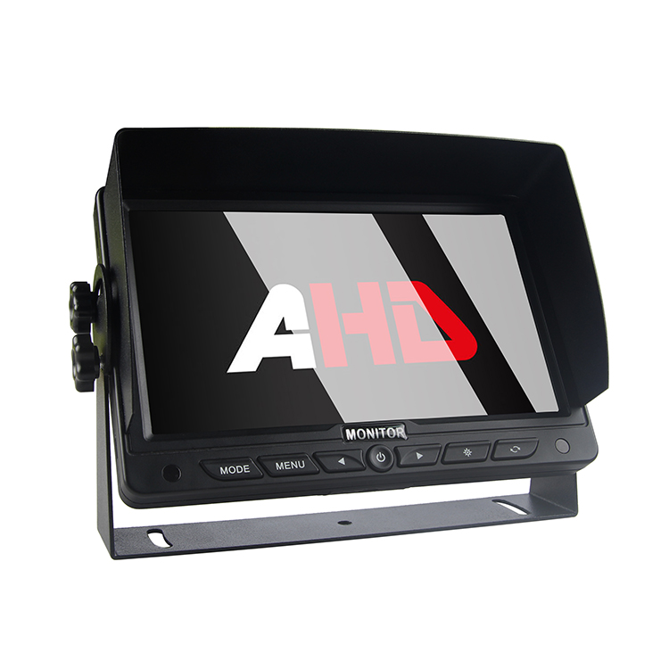Вештачка интелигенција за откривање слепа точка Камера од заден поглед Вграден звучен и светлосен алармКарлидер 7-инчен 2CH AHD влезови Vehicle Reversing Monitor, AHD монитор за возила со висока резолуција кој е идеален за тешки комерцијални возила, како на пр.камион, автобус, RV, приколка, земјоделско возило и градежно возило, итн. Новиот дигитален панел од 7 инчи и соодносот на сликата 16:9, со резолуција од 1024 x 600 (RGB), му нудат на возачот јасно и сигурно возачко искуство.