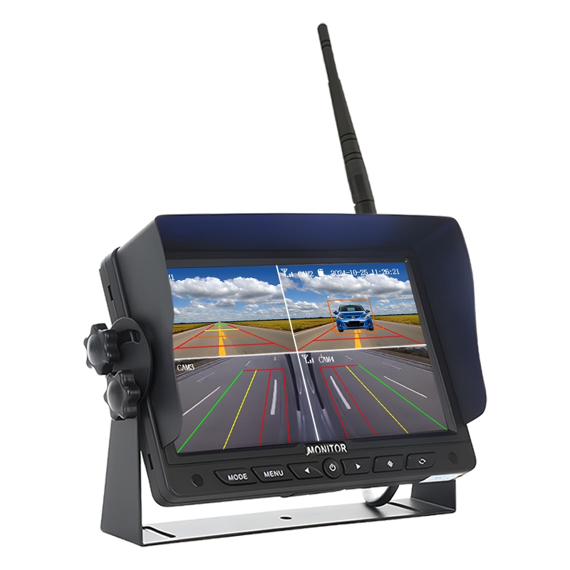 AHD мониторинг на возачот Камера со поглед во кабинатаCarleader 7-инчен BSD систем за безжичен мониторинг за откривање слепа точка, систем за дигитална безжична камера интегриран со функција за откривање вештачка интелигенција, поддршка за откривање и аларм за пешаци и возила, го предупредува возачот за ситуацијата околу возилото. Автоматско спарување безжични камери до 4 канали 720P, секој канал поддржува функција за откривање вештачка интелигенција. Следете го вграденото мени за калибрација со вештачка интелигенција за да ја прилагодите големината на областа за откривање според вистинската позиција и агол на инсталирање. Монитор Поддржува опционална функција за снимање во циклус, поддршка за складирање на SD-картичка до 256 GB.