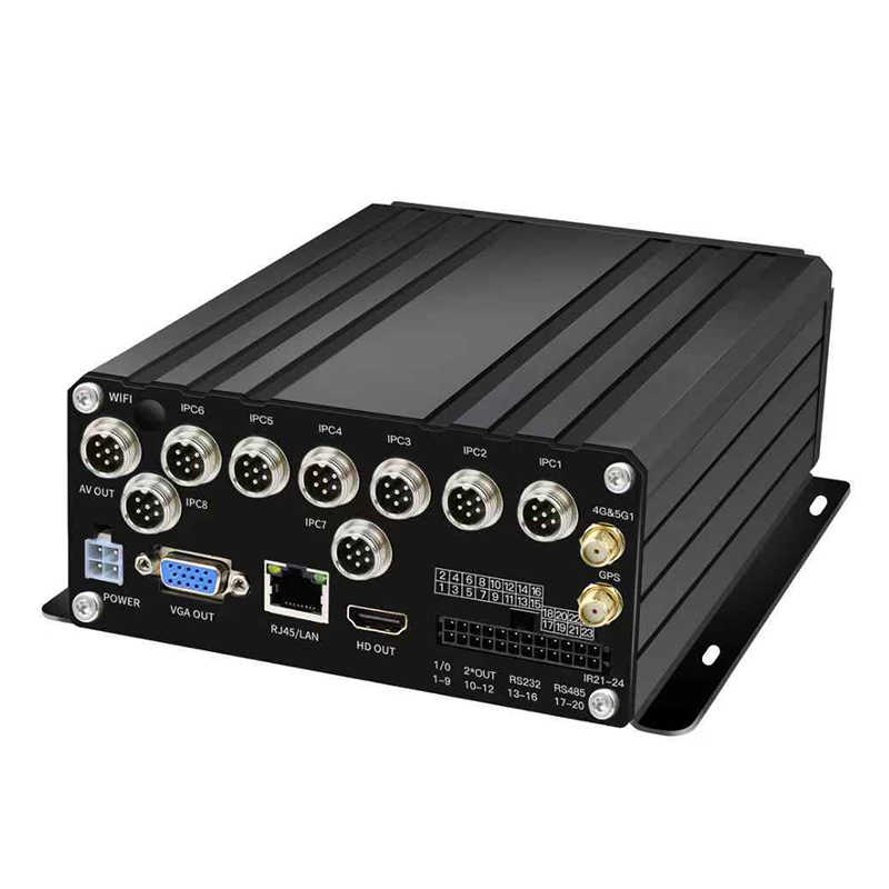 8-каналниот (8-насочен) мобилен NVR на возилото располага со 4 IPC канали и 4 AHD канали, за вкупно 8 каналиls. На 8 CH IPC+AHD HDD Mobile NVR се одликува со стандарден 2,5-инчен SATA хард диск за складирање видео од сите камери. Дизајниран за употреба во возилото, мобилниот NVR 8CH 1080P AHD IPC располага со сензор за палење, отпорност на удар, широк влез на напон и вграден GPS, 4G и Wi-Fi. AHD камерите се погодни за области со долги коаксијални кабли или високи електромагнетни пречки. IP камерите со PoE користат единствен мрежен кабел за пренос и напојување и податоци.