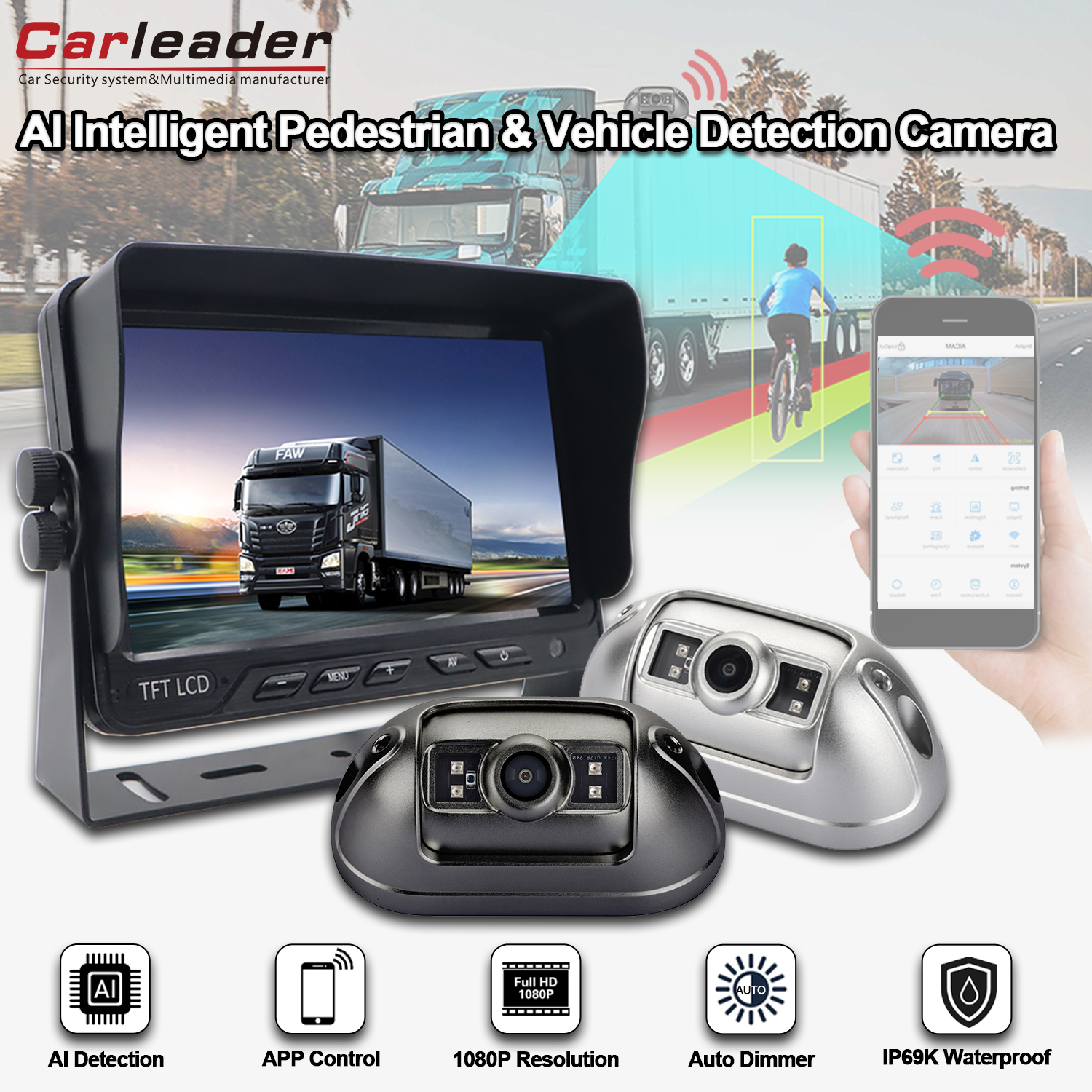 Поддржете ја поставката за калибрација со вештачка интелигенција со мобилен телефон преку WIFIКарлидерAI BSD систем за камера за возила за пешаци и детекција на возила 7-инчен AI BSD систем со високи перформанси кој поддржува откривање на пешаци и возила и го алармира возачот. камера со WIFI-модул за USB порта, му овозможува на корисникот да ја прилагоди калибрацијата на функцијата со вештачка интелигенција и основната поставка на камерата со мобилен телефон преку WIFI конекција, вклучувајќи ја и опцијата за резолуција,Калибрација на областа за откривање, тип и јачина на звукот на алармот, чувствителност на активирањето за откривање, опција за откривање објект итн. Помогнете му на корисникот подобро да го собере своето возило преку прилагодување.