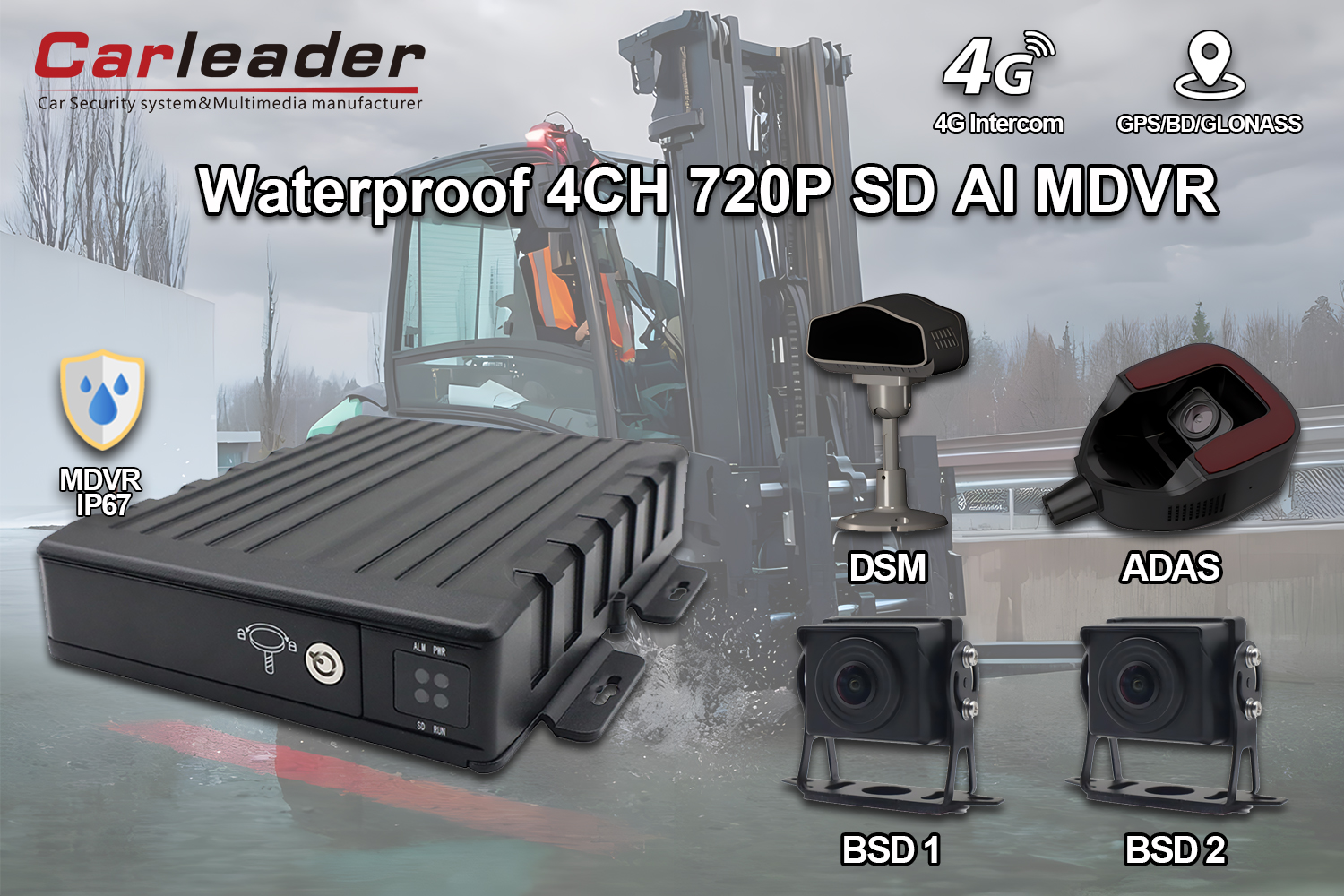 Carleader IP67 водоотпорен AI 4CH SD Mobile DVRе стабилен, интелигентен 4-каналМобилен дигитален рекордер за видеоНаменето за барање автомобилски околини. Комбинирајќи ја врвната технологија со груба издржливост, обезбедува сигурни перформанси за управување со флота, безбедност на транспортот и апликации за набудување во реално време.
