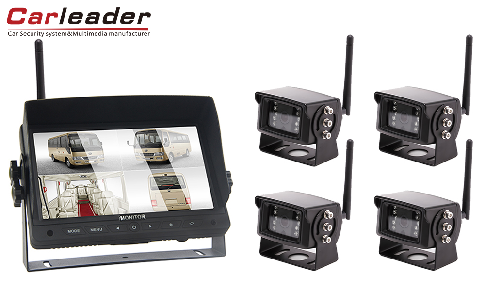 Карлидер7 инчен 2.4G дигитален безжичен 2CH систем за камера со поделен екран, Систем за безжичен мониторинг со високи перформанси со поддршка за приказ на 2 лизгачки дисплеј, парење со безжична камера од 2 парчиња. Дигитален панел од 7 инчи, сооднос на слика 16 : 9, резолуција од 1024 x 600 (RGB), му обезбедува на возачот висока јасност во возењето.