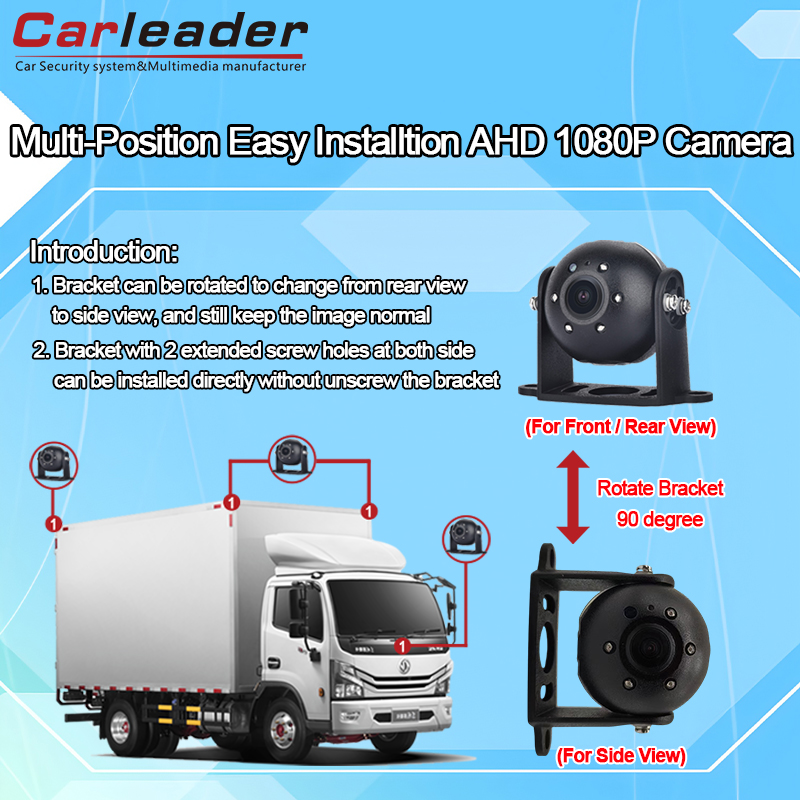 КарлидерAHD тешко возило со поглед преден/страничен/заден Камера со отвор за инсталирање на заградата на горе, долу, десно, лево, што овозможува камерата да ја прилагоди заградата на камерата за да одговара на различните позиции на камерата, како преден, страничен и заден поглед, ја прави оваа камера покомпатибилна за системот за надзор на безбедноста на возилата.