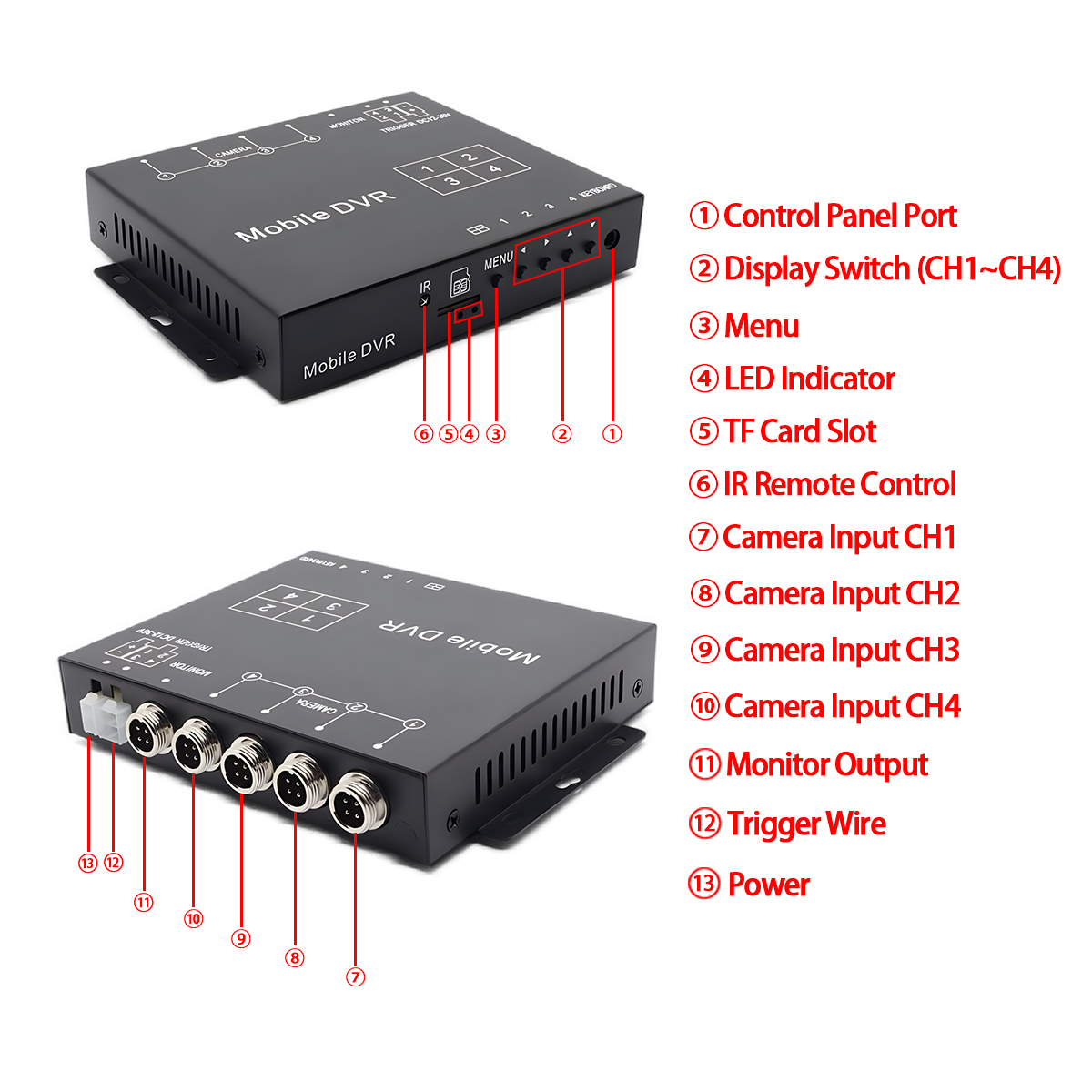 Оваа четворна кутија со сплитер е идеална за комерцијални камиони и флоти, автобуси и тренери, возила за итни случаи и безбедност, градежништво и тешка опрема, секое друго возило за кое е потребно прикажување на повеќе камери и функција за снимање