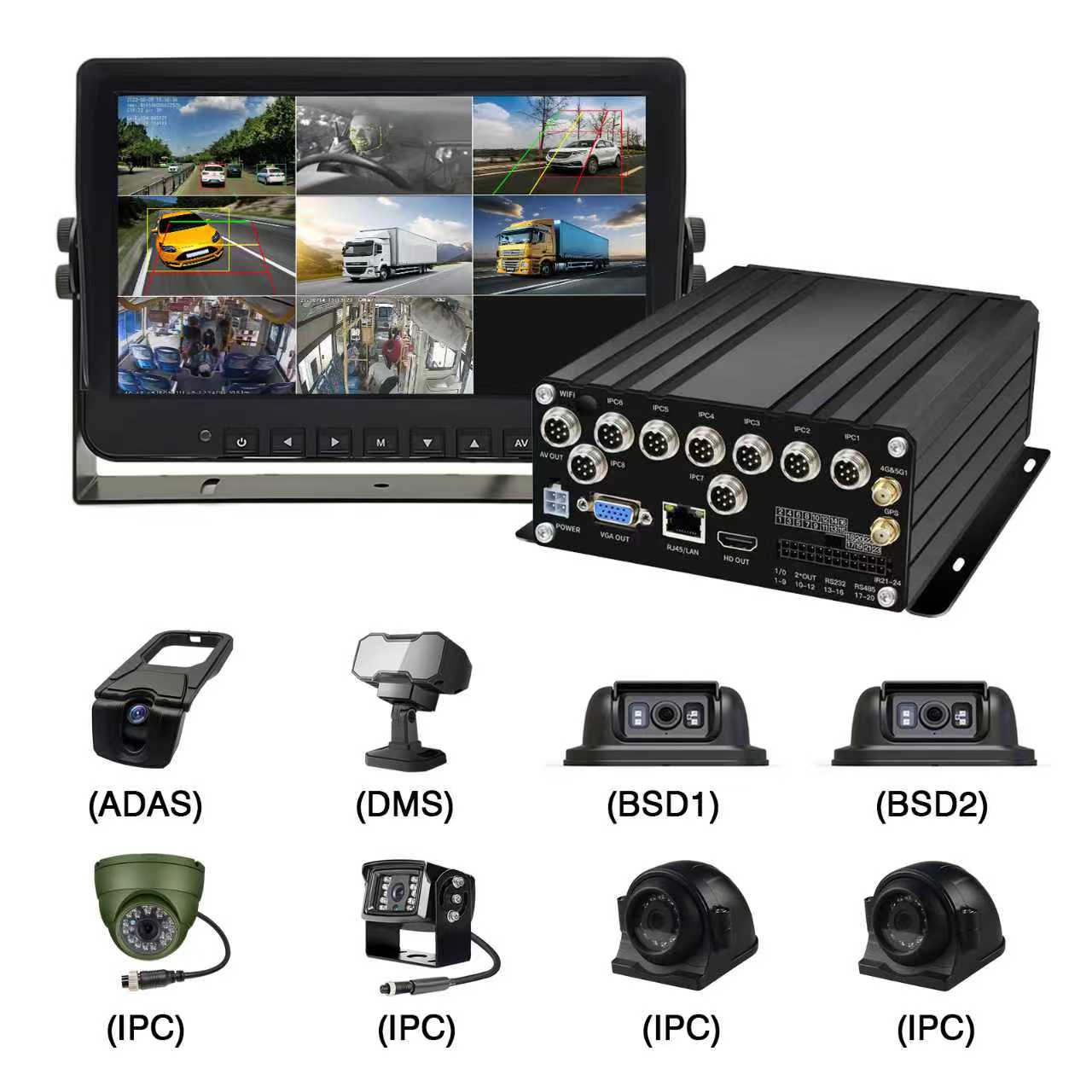 8 CH HDD мобилен NVR (4CH IPC+4CH AHD) вграден ADAS (напредни системи за помош на возачот), (вклучува: предупредување за следење на напред, предупредување за преден судир, предупредување за напуштање лента, итн.) Вграден DSM (следење на статусот на возачот) ,(следење на статус на возачот): инфрацрвени блокирачки очила за сонце, абнормален возач, оклузија, споредба на возачот и други аларми). Вграден BSD (откривање слепа точка) , (поддржува аларм од 3 степени). 8 CH HDD возило NVR со професионален дизајн за напојување во возилото, широк опсег на напон од 9-36V DC. Безбедност на возилото NVR има многу моќни функции. Контактирајте не за да дознаете повеќе за принципот на работа и потребата од DVR на возилото.